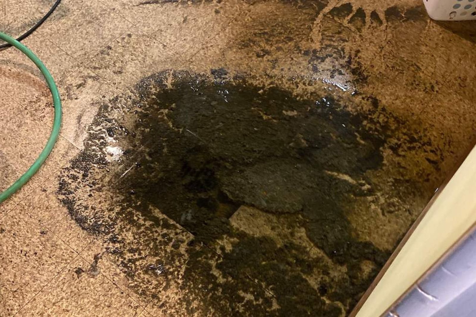 This water has some dirt or chemicals. It might come from a washing machine or a dishwasher that has leaked.