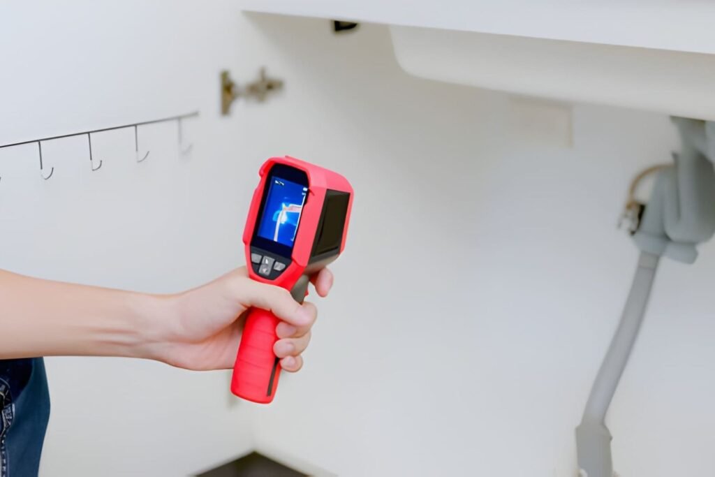 Thermal imaging cameras find hidden moisture behind cabinets. We locate the source of the drip without breaking down your walls.